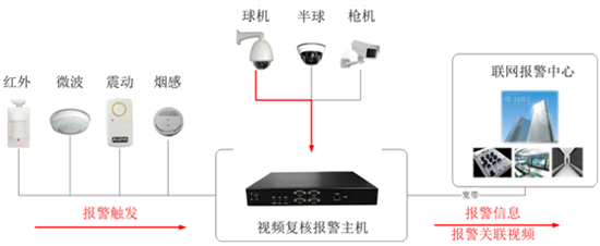视频复核实际上是视频联动,是报警联动的一种应用形式,其报警源是红外、微波等传统报警产品。