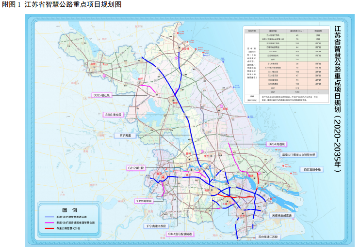 推进智慧公路联网成片。围绕全要素智能感知、全业务智能管理、全方位智能服务、车路协同自动驾驶等目标,打造京沪智慧高速、沪宁智慧高速、苏台智慧高速、常泰未来智慧大桥、126省道全生命期智慧公路等一批示范工程。面向新建、改扩建高速公路和普通国省道公路同步开展智慧公路建设,实现“增量”提质升级。同时以长三角一体化智慧走廊、沿江地区、苏南片区、南京都市圈等为重点,开展存量公路智慧化升级,实现“存量”挖潜增效。