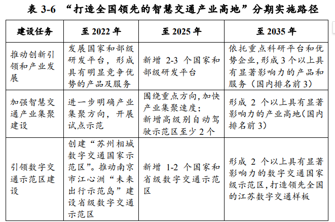 聚焦优势领域,打造产业集群高地。推动智能驾驶产业集群发展,支持常熟智能网联汽车测试基地、相城长三角智能网联汽车产业示范区、常州天宁智能网联汽车测试区等建设,依托苏州高铁新城、常州天宁区开设基于车用无线通信技术(V2X)驾驶的公交线路、太仓港无人驾驶集卡等示范应用,率先形成自动驾驶技术商业化应用示范。推动智能装备产业集群发展,支持徐州研发无人驾驶压路机、3D机械控制推土机、平地机等公路建设与养护装备,支持盐城打造新型城市轨道交通装备产业。推动智慧云控产业集群发展,支持省交通控股集团推广基于云网边端融合一体的智慧路网云控平台。将苏南地区智慧交通产业建设成为有影响力的高地。